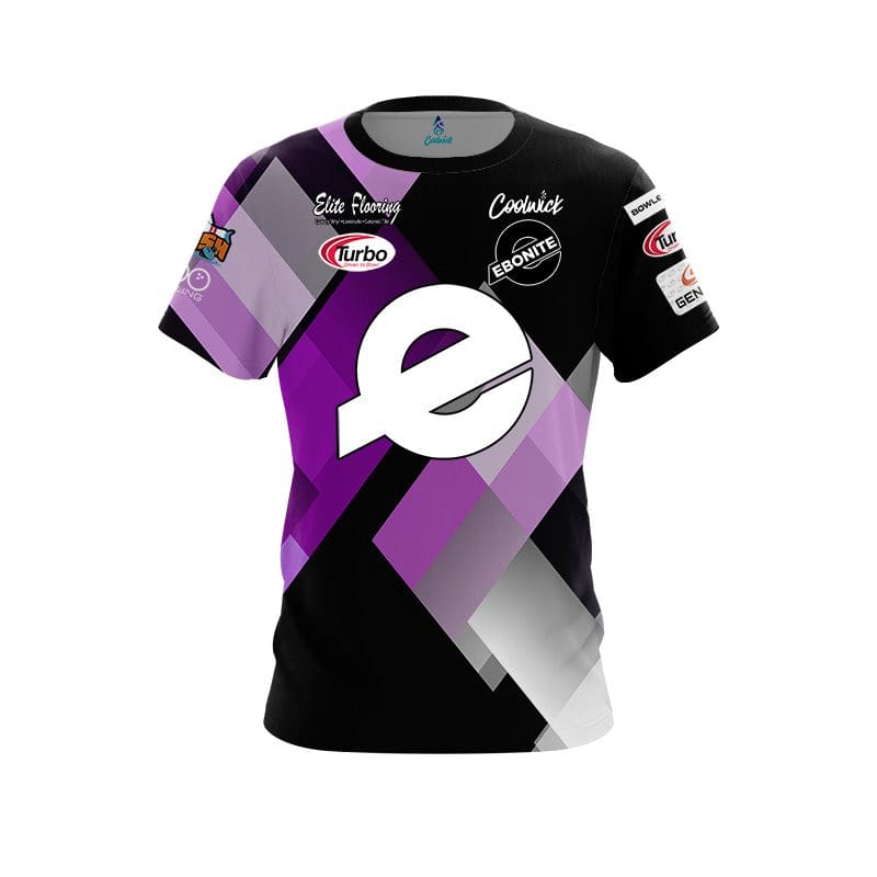 Designed, cut and sewn by hand stay 40% cooler with CoolWick. Our AJ Chapman Purple Triangles Triangles Replica CoolWick Bowling Jerseys are made of two different fabrics with the back being our CoolWick technology fabric that helps wick moisture away and helps air flow more easily through the fibers.
