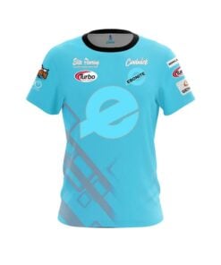 Designed, cut and sewn by hand stay 40% cooler with CoolWick. Our AJ Chapman Teal and Grey Element Replica CoolWick Bowling Jerseys are made of two different fabrics with the back being our CoolWick technology fabric that helps wick moisture away and helps air flow more easily through the fibers.