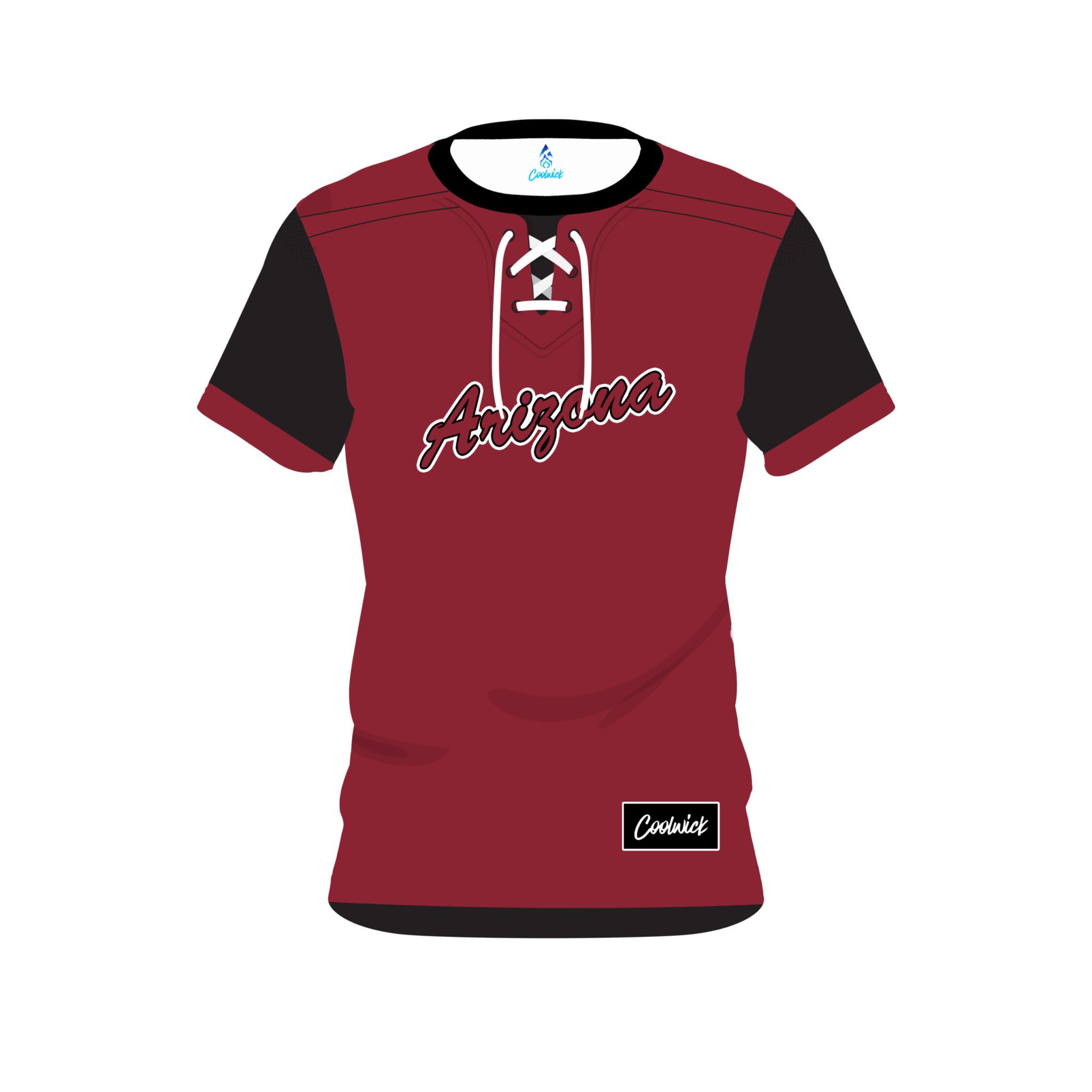 Designed, cut and sewn by hand stay 40% cooler with CoolWick. Our Arizona Hockey Coolwick Bowling Jerseys are made of two different fabrics with the back being our CoolWick technology fabric that helps wick moisture away and helps air flow more easily through the fibers.