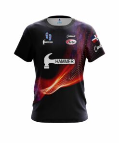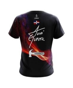 Stay 40% cooler with CoolWick. Our Aumi Guerra Electrode Hammer CoolWick Bowling Jerseys are made of two different fabrics with the back being our CoolWick technology fabric that helps wick moisture away and helps air flow more easily through the fibers.