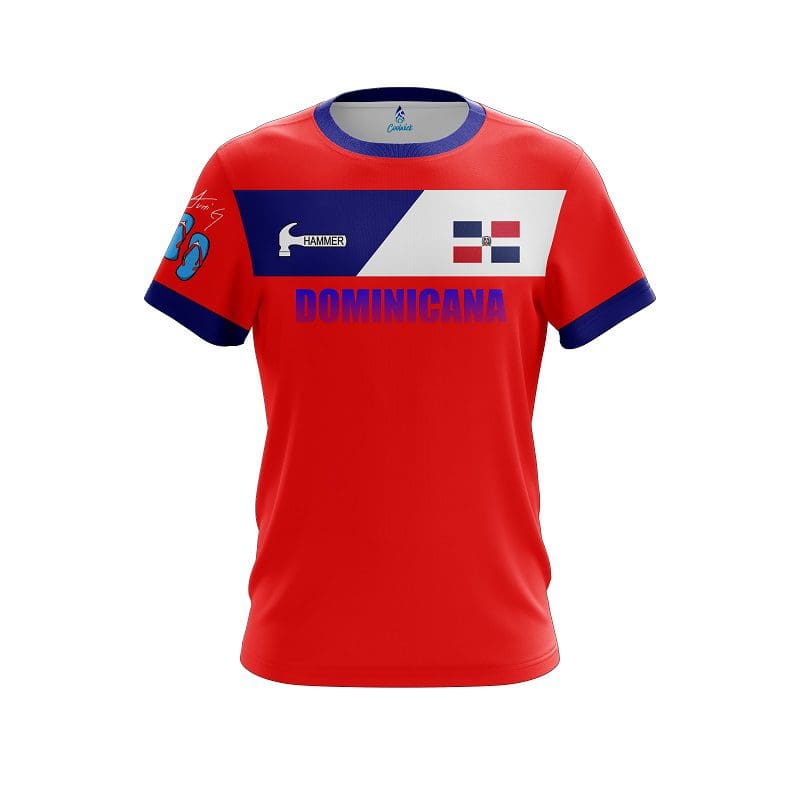 Stay 40% cooler with CoolWick. Our Aumi Guerra Team Dom Red Hammer CoolWick Bowling Jerseys are made of two different fabrics with the back being our CoolWick technology fabric that helps wick moisture away and helps air flow more easily through the fibers.