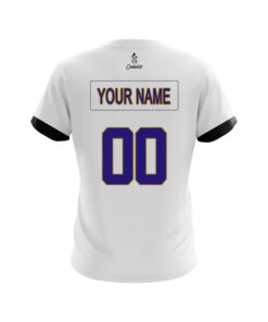 Designed, cut and sewn by hand stay 40% cooler with CoolWick. Our Baltimore Away Football CoolWick Bowling Jerseys are made of two different fabrics with the back being our CoolWick technology fabric that helps wick moisture away and helps air flow more easily through the fibers.