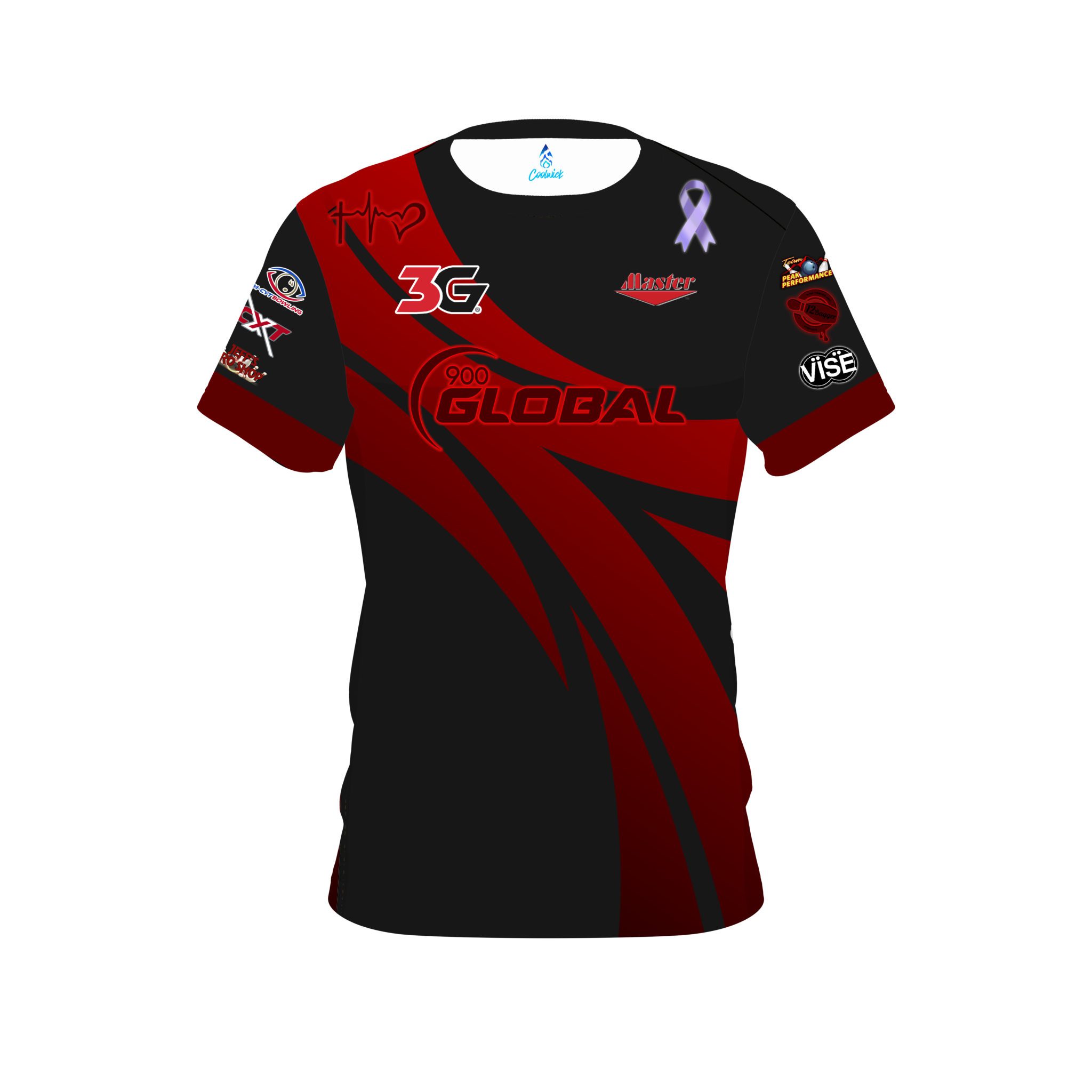 Stay 40% cooler with CoolWick. Our Ben Brindle Wavy Red Replica CoolWick Bowling Jerseys are made of two different fabrics with the back being our CoolWick technology fabric that helps wick moisture away and helps air flow more easily through the fibers.