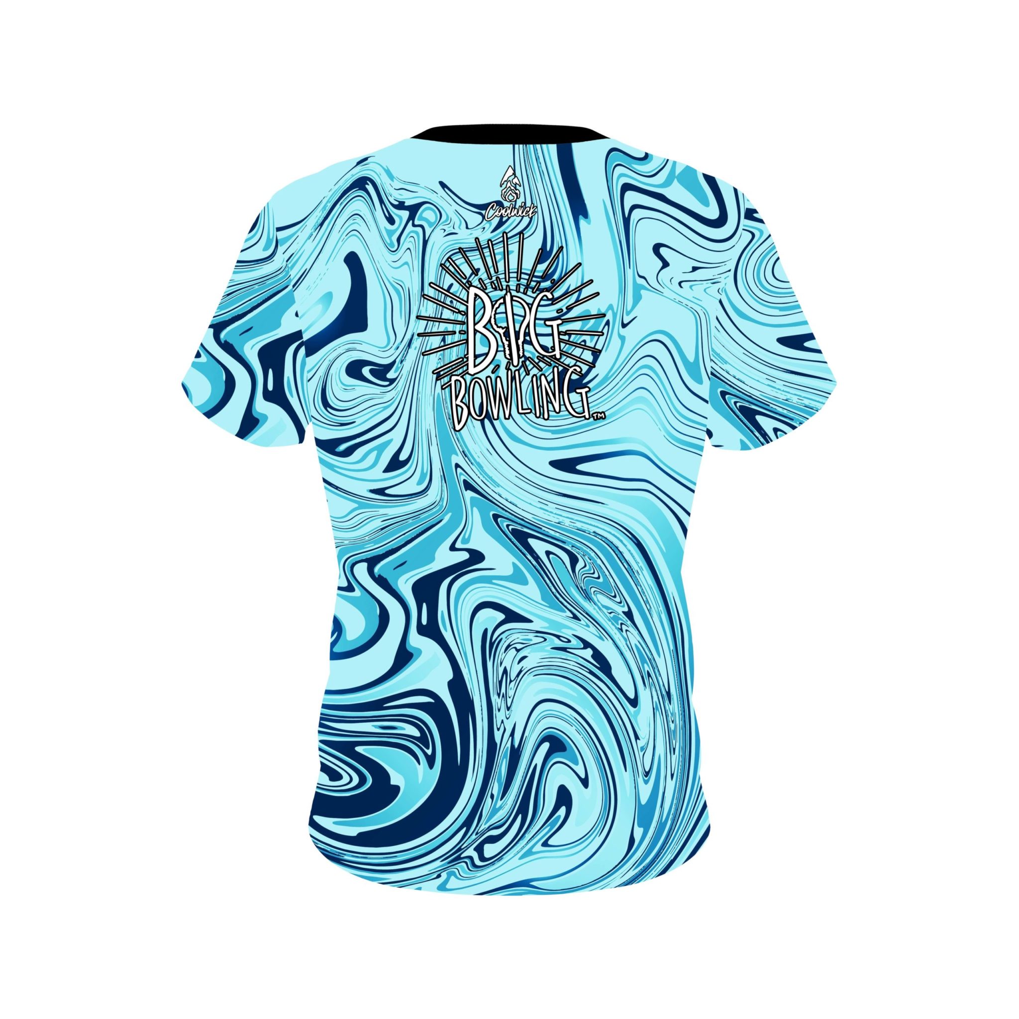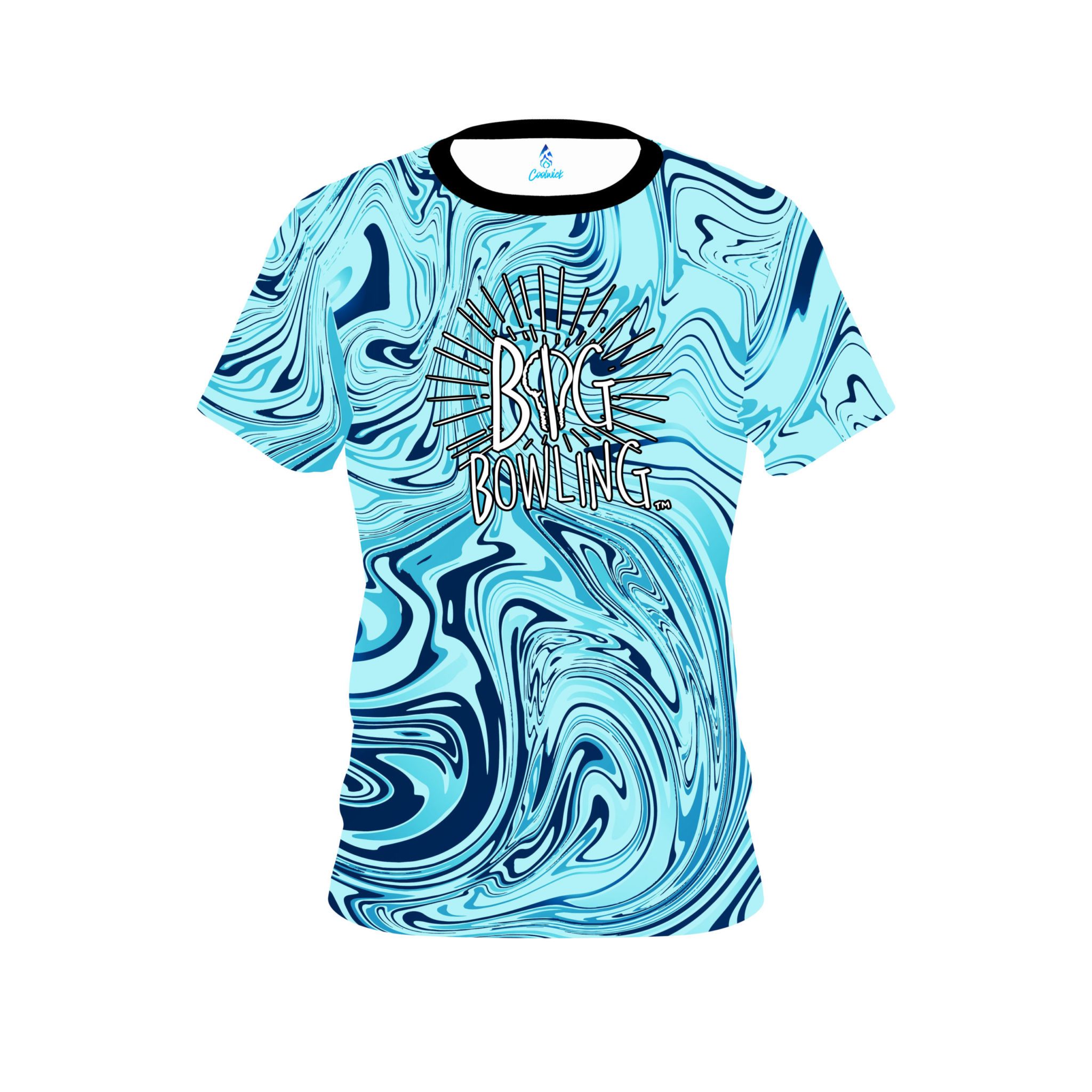 Stay 40% cooler with CoolWick. Our Big Bowling Blue Hallucinate CoolWick Bowling Jerseys are made of two different fabrics with the back being our CoolWick technology fabric that helps wick moisture away and helps air flow more easily through the fibers.