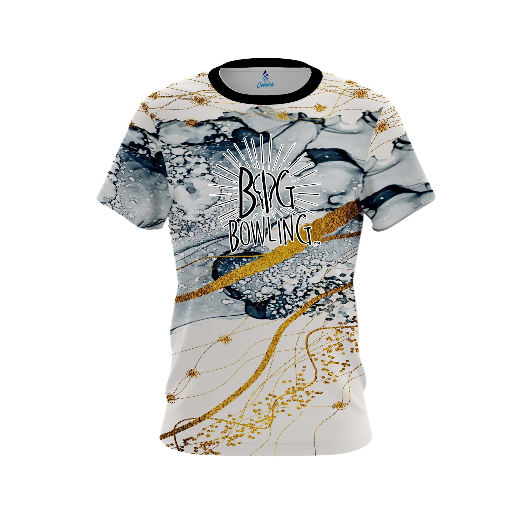Stay 40% cooler with CoolWick. Our Big Bowling Gold Granite CoolWick Bowling Jerseys are made of two different fabrics with the back being our CoolWick technology fabric that helps wick moisture away and helps air flow more easily through the fibers.