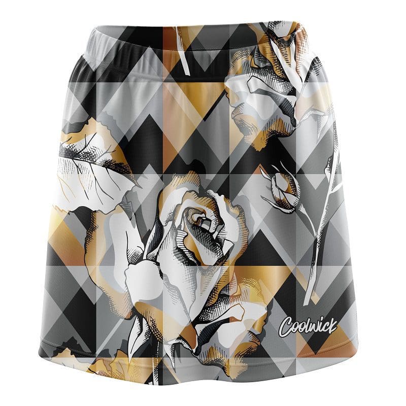 The easy choice for laid-back, lightweight and layerable style.Black And Gold Rose CoolWick Bowling Skorts are made of a higher quality light-weight material that helps resist snagging and pulls. The fabric technology helps wick moisture away helping air flow more easily through the fibers and keeping you cool while looking your best. All made by hand right here in the USA.