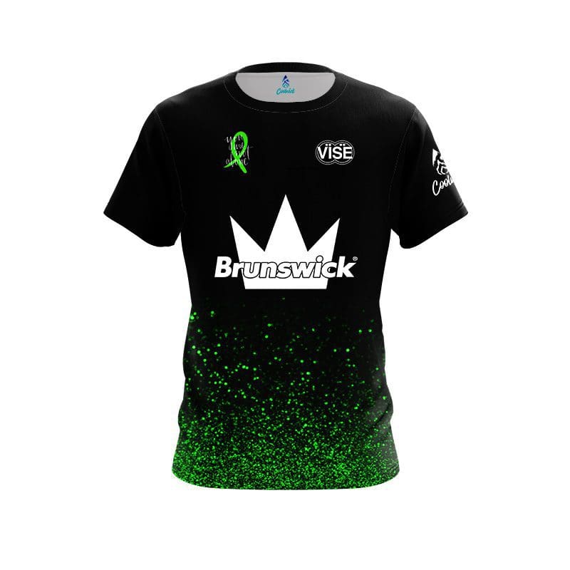 Designed, cut and sewn by hand stay 40% cooler with CoolWick. Our Brianna Andrew Green Glitter CoolWick Bowling Jerseys are made of two different fabrics. The back being our CoolWick technology fabric that helps wick moisture away and helps air flow more easily through the fibers.
