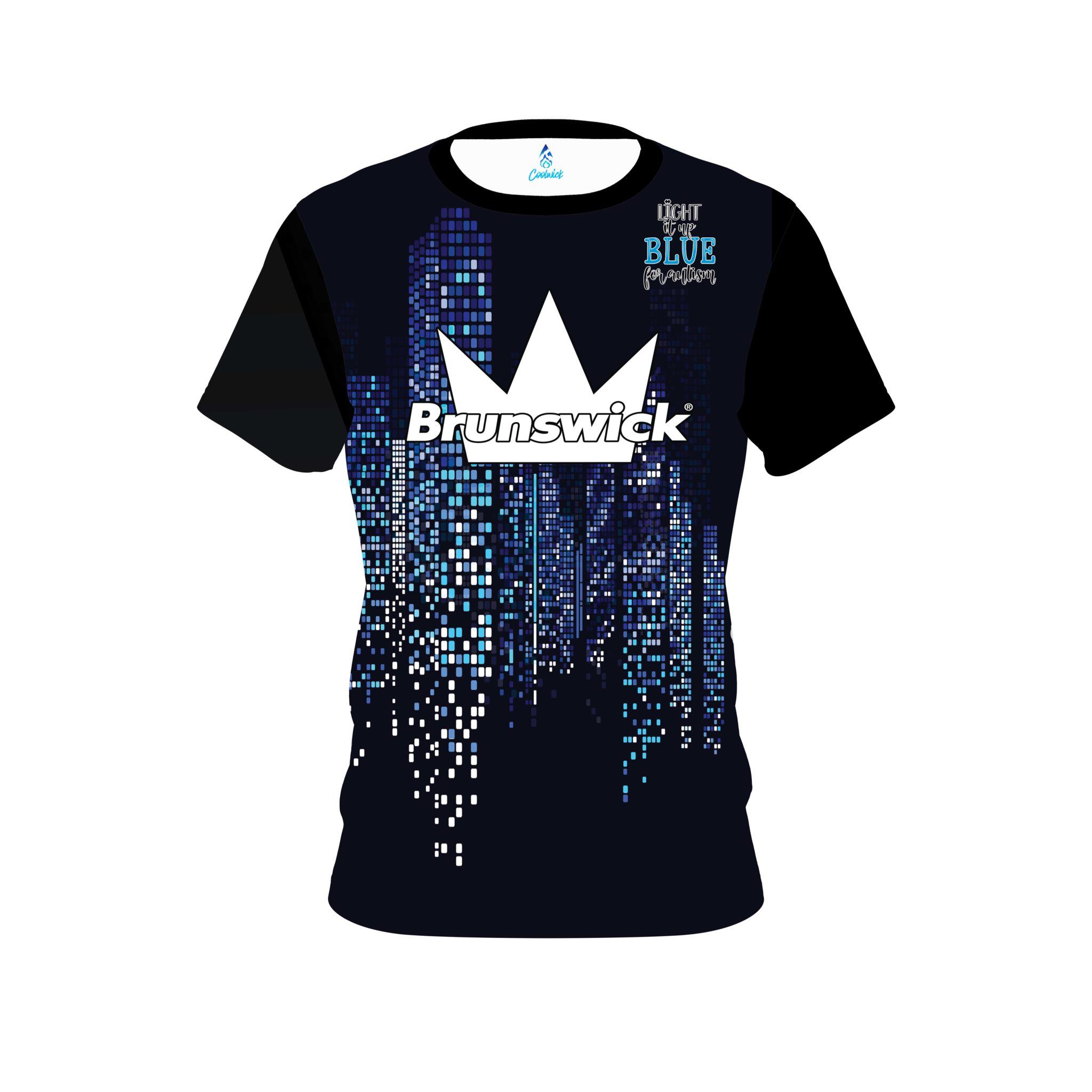 Stay 40% cooler with CoolWick. Our Brunswick Autism Light It Up Blue Pixels CoolWick Bowling Jerseys are made of two different fabrics with the back being our CoolWick technology fabric that helps wick moisture away and helps air flow more easily through the fibers.
