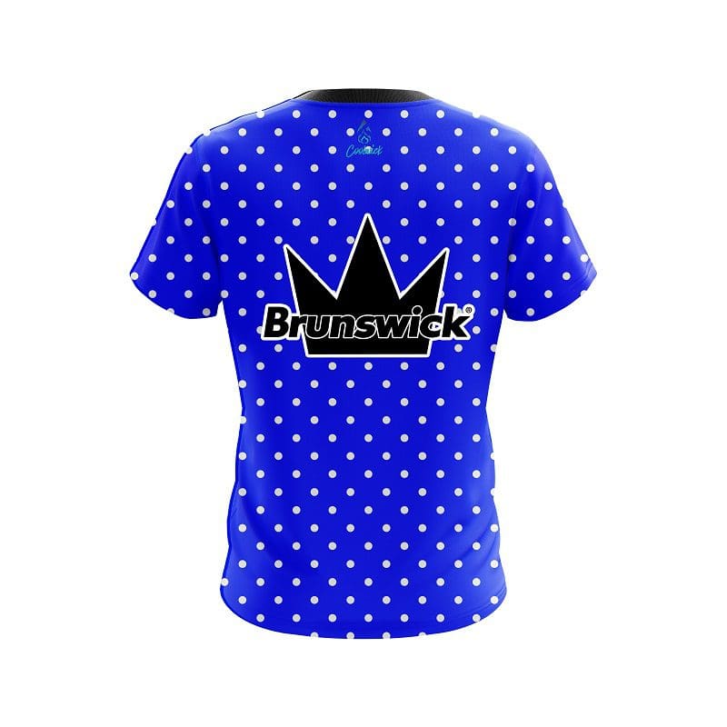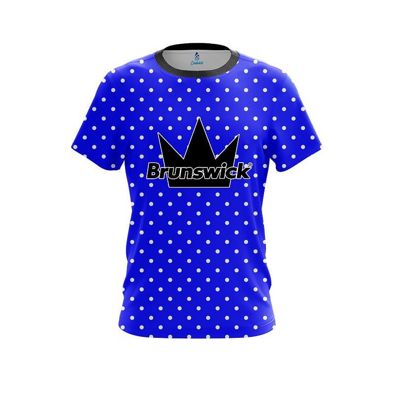 Stay 40% cooler with CoolWick. Our Brunswick Blue And White Dots CoolWick Bowling Jersey are made of two different fabrics with the back being our CoolWick technology fabric that helps wick moisture away and helps air flow more easily through the fibers.