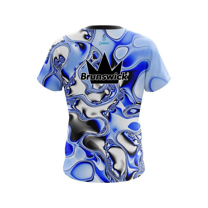 Stay 40% cooler with CoolWick. Our Brunswick Blue And White Liquid Canvas CoolWick Bowling Jerseys are made of two different fabrics with the back being our CoolWick technology fabric that helps wick moisture away and helps air flow more easily through the fibers.