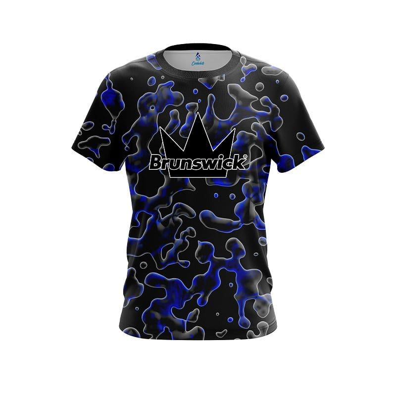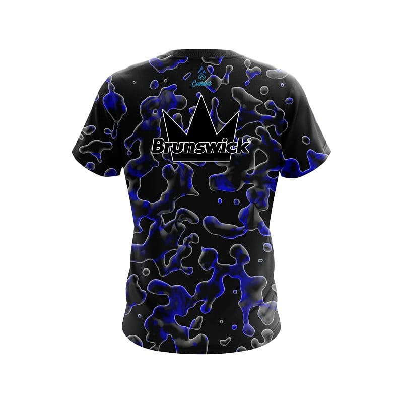 Stay 40% cooler with CoolWick. Our Brunswick Blue Flowing Fluid CoolWick Bowling Jerseys are made of two different fabrics with the back being our CoolWick technology fabric that helps wick moisture away and helps air flow more easily through the fibers.