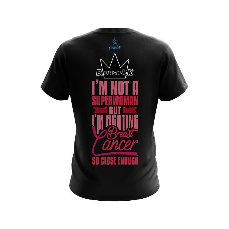 Stay 40% cooler with CoolWick. Our Brunswick Breast Cancer Superwoman CoolWick Bowling Jerseys are made of two different fabrics with the back being our CoolWick technology fabric that helps wick moisture away and helps air flow more easily through the fibers.