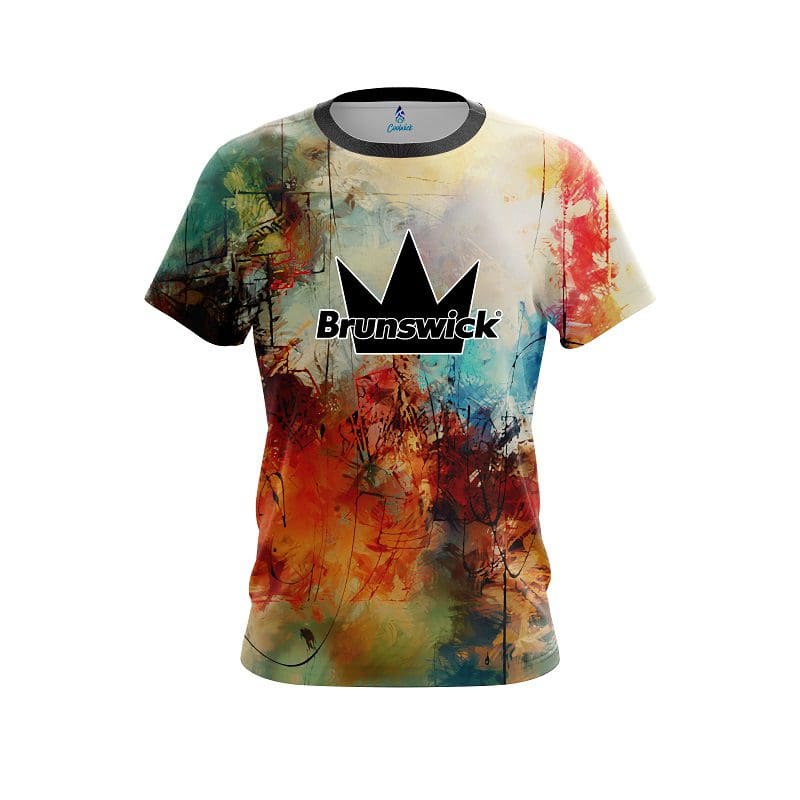 Stay 40% cooler with CoolWick. Our Brunswick Colorful Painted Canvas Grunge CoolWick Bowling Jerseys are made of two different fabrics with the back being our CoolWick technology fabric that helps wick moisture away and helps air flow more easily through the fibers.