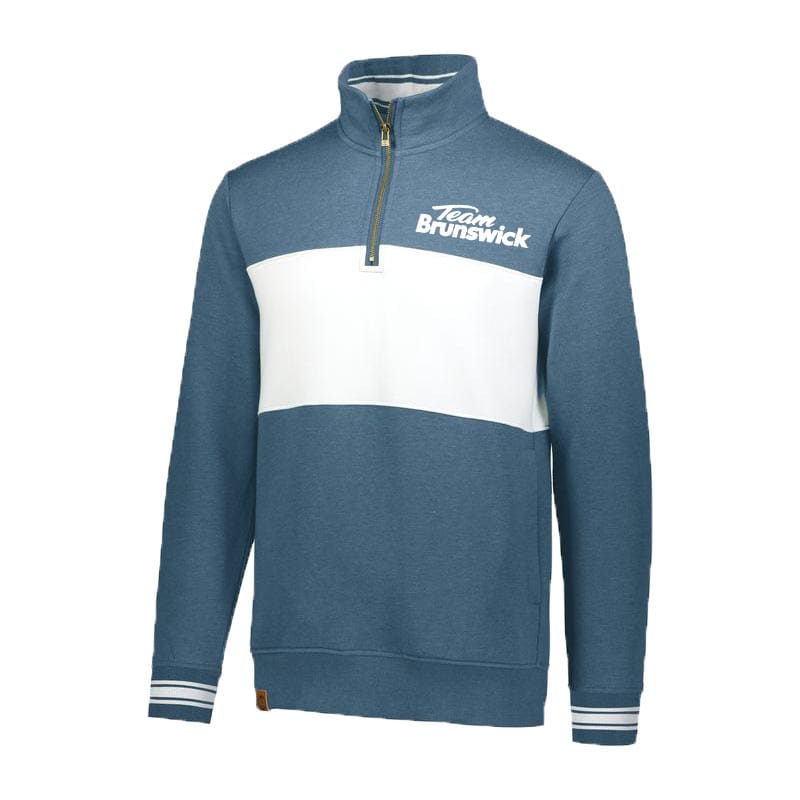 - Quarter zip pullover style with antique brass zipper and zipper pull