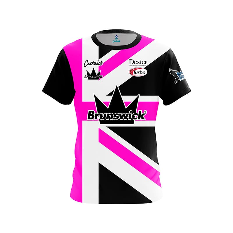 Bowl like a pro with our signature replica jerseys! Introducing the Brunswick Dom Barrett Black Pink Union Jack CoolWick Bowling Jersey, expertly designed with innovative fabrics to deliver exceptional performance and style. Crafted with CoolWick’s cutting-edge technology, this dye-sublimated jersey keeps you up to 40% cooler by efficiently wicking away moisture and enhancing airflow.