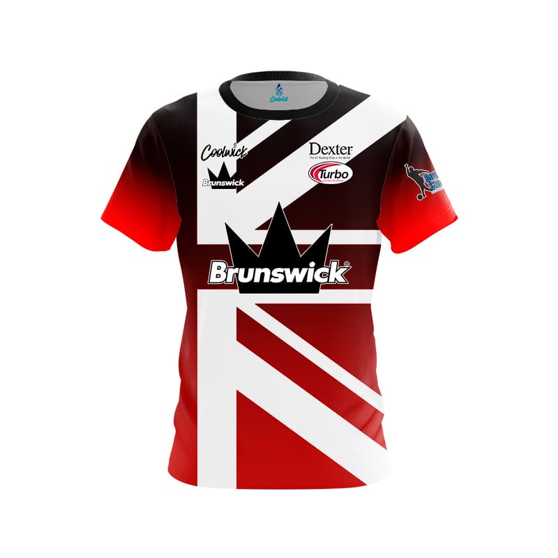 Shop now and elevate your game with the Brunswick Dom Barrett Black Red Union Jack CoolWick Bowling Jersey – exceeding the benchmark of performance and style.