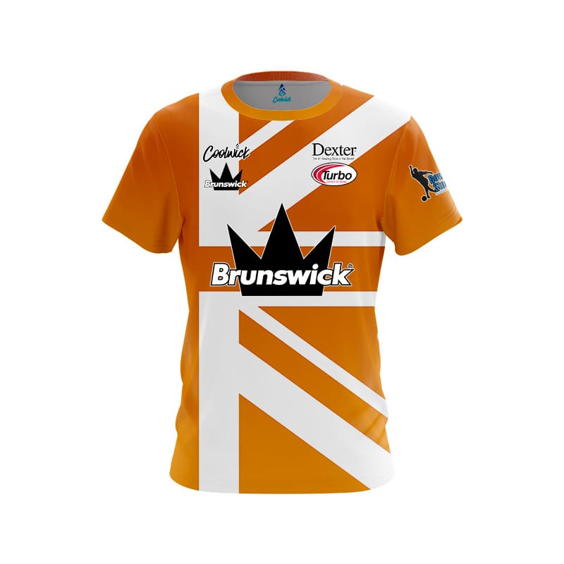Shop now and elevate your game with the Brunswick Dom Barrett Sunset Union Jack CoolWick Bowling Jersey – exceeding the benchmark of performance and style.