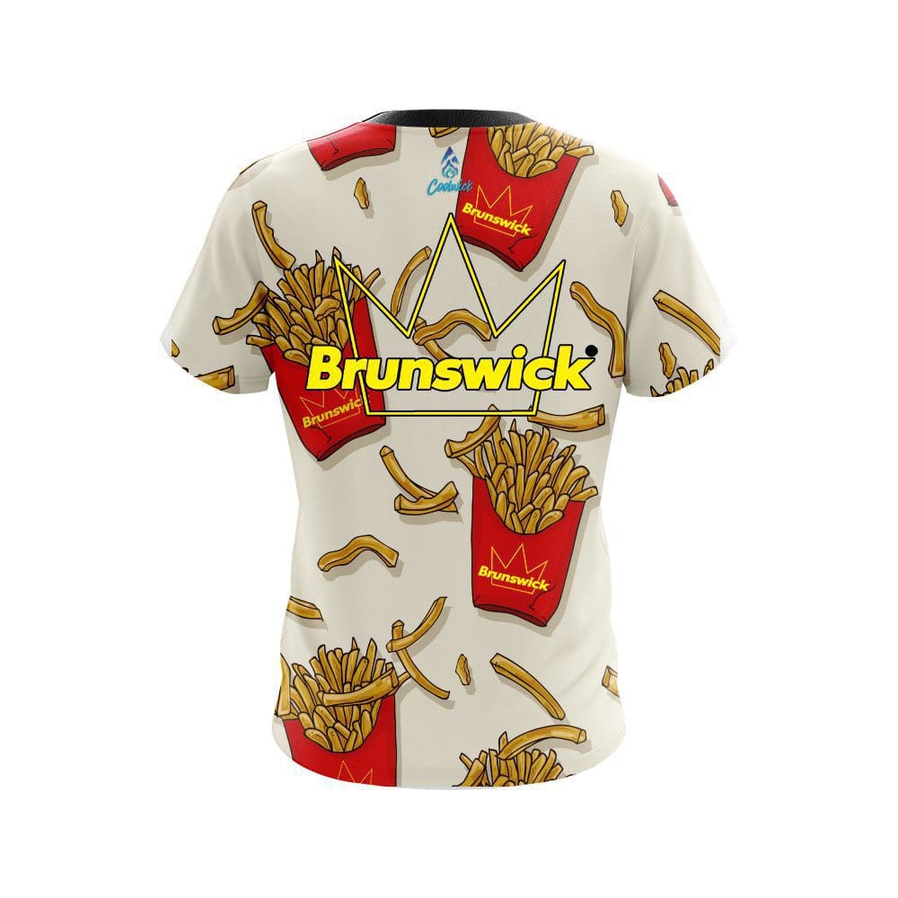 Stay 40% cooler with CoolWick. Our Brunswick French Fries White CoolWick Bowling Jerseys are made of two different fabrics. The back being our CoolWick technology fabric that helps wick moisture away and helps air flow more easily through the fibers.