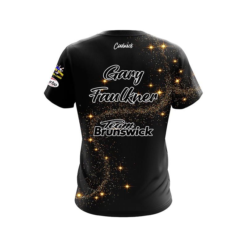 Gear up for a remarkable experience of performance, comfort, and style all rolled into one! Introducing the breathtaking Brunswick Gary Faulkner Jr. Gold Glitter CoolWick Bowling Jersey – meticulously crafted with the latest custom design by CoolWick Staffer, Gary Faulkner Jr.!
