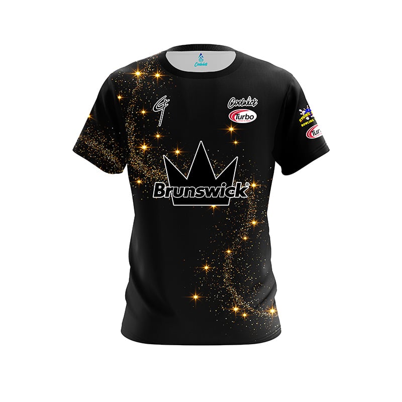 Are you ready to exceed the benchmark of style and performance? Elevate your game with the Brunswick Gary Faulkner Jr. Gold Glitter CoolWick Bowling Jersey. Don’t miss out on this extraordinary opportunity – get yours today and experience the epitome of bowling excellence!