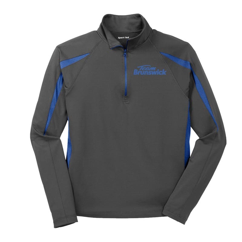 Get ready to roll in style with the Brunswick Grey True Royal Coolwick Sport-Wick Stretch 1/2-Zip Colorblock Pullover! Perfect for any day at the lanes, this pullover is fashionable and functional. Whether you’re aiming for strikes or just want to look good for the camera, this bowling pullover is sure to make an impression!