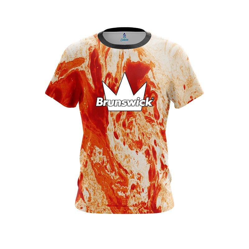 Stay 40% cooler with CoolWick. Our Brunswick Marble Orange CoolWick Bowling Jerseys are made of two different fabrics with the back being our CoolWick technology fabric that helps wick moisture away and helps air flow more easily through the fibers.