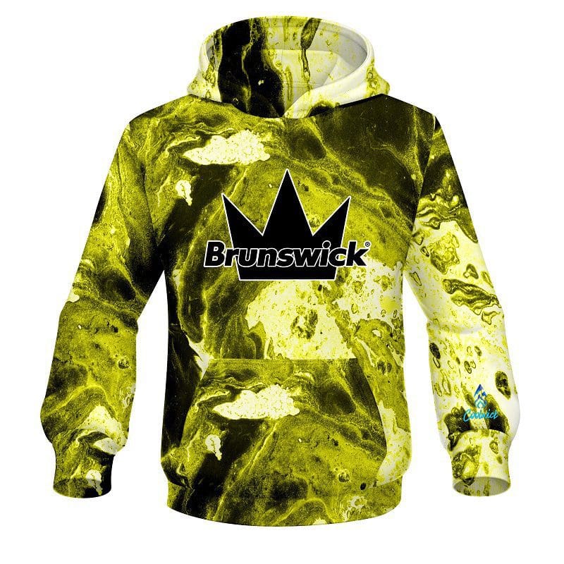 Designed, cut and sewn by hand, our Brunswick Marble Yellow CoolWick Bowling Hoodies are made to keep you warm and comfy with HD graphics and eye-catching style.