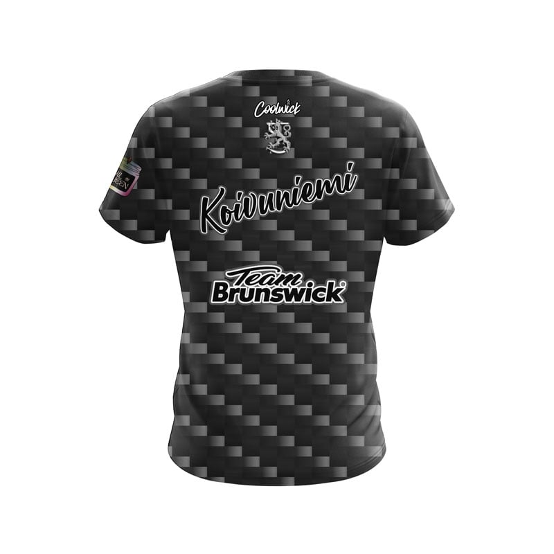 Gear up for a remarkable experience of performance, comfort, and style all rolled into one! Introducing the breathtaking Brunswick Mika Koivuniemi Carbon Silver CoolWick Bowling Jersey – meticulously crafted with the latest custom design by Professional Bowler and CoolWick Staffer, Mika Koivuniemi!