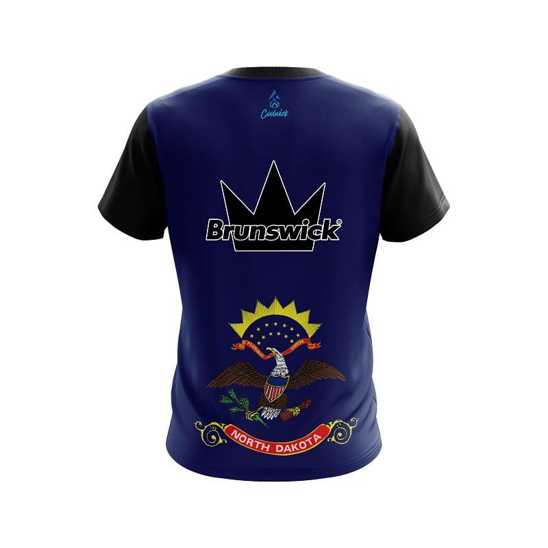 Stay 40% cooler with CoolWick. Our Brunswick North Dakota Flag CoolWick Bowling Jersey are made of two different fabrics with the back being our CoolWick technology fabric that helps wick moisture away and helps air flow more easily through the fibers.