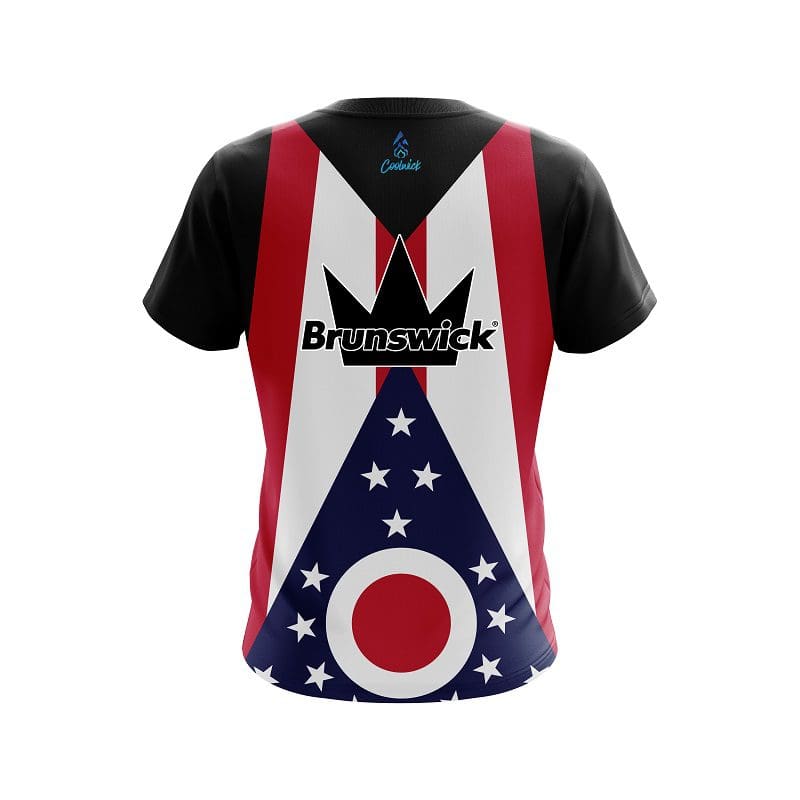 Stay 40% cooler with CoolWick. Our Brunswick Ohio Flag CoolWick Bowling Jersey are made of two different fabrics with the back being our CoolWick technology fabric that helps wick moisture away and helps air flow more easily through the fibers.