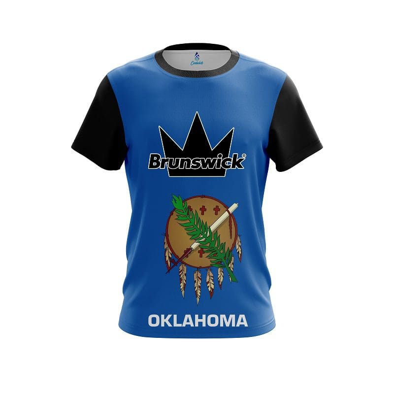 Stay 40% cooler with CoolWick. Our Brunswick Oklahoma Flag CoolWick Bowling Jersey are made of two different fabrics with the back being our CoolWick technology fabric that helps wick moisture away and helps air flow more easily through the fibers.