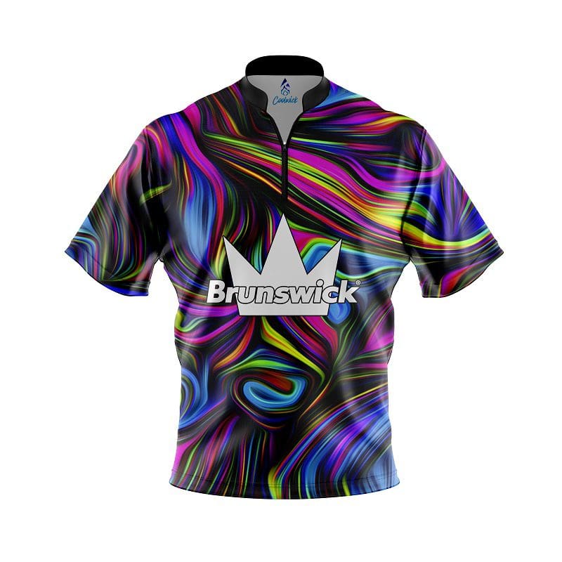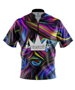 Stay 40% cooler with CoolWick. Our Brunswick Psychedelic Swirl Quick Ship CoolWick Sash Zip Bowling Jersey s are made of CoolWick technology fabric that helps wick moisture away and helps air flow more easily through the fibers.