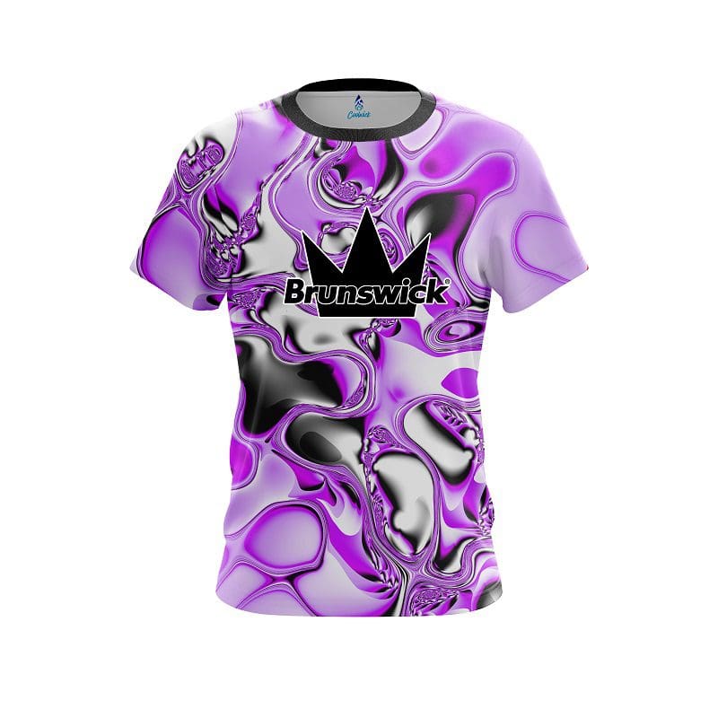 Stay 40% cooler with CoolWick. Our Brunswick Purple And White Liquid Canvas CoolWick Bowling Jerseys are made of two different fabrics with the back being our CoolWick technology fabric that helps wick moisture away and helps air flow more easily through the fibers.