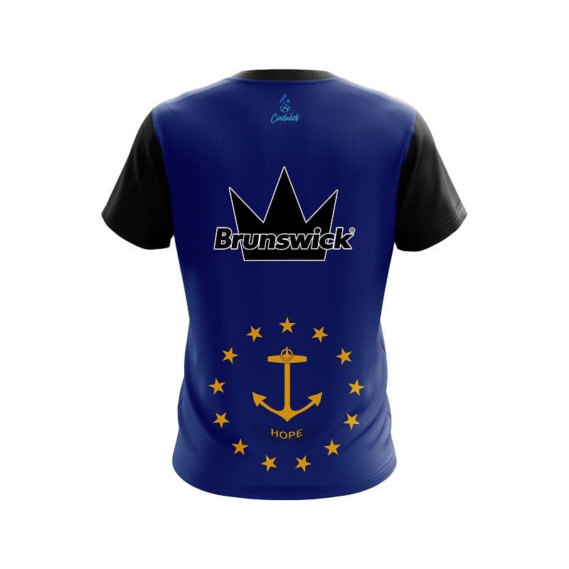 Stay 40% cooler with CoolWick. Our Brunswick Rhode Island Flag CoolWick Bowling Jersey are made of two different fabrics with the back being our CoolWick technology fabric that helps wick moisture away and helps air flow more easily through the fibers.