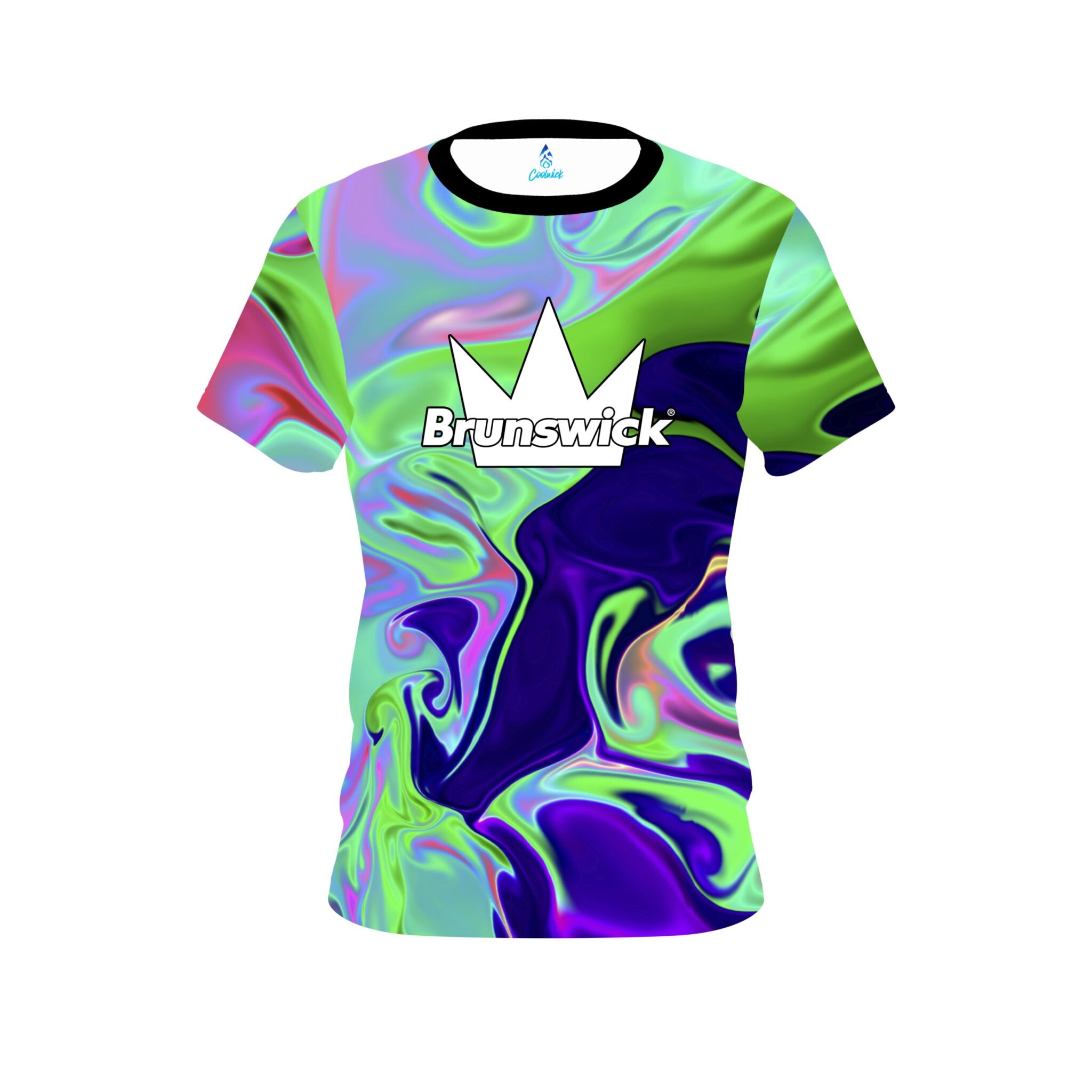 Stay 40% cooler with CoolWick. Our Brunswick Trippy Coolwick Bowling Jerseys are made of two different fabrics with the back being our CoolWick technology fabric that helps wick moisture away and helps air flow more easily through the fibers.