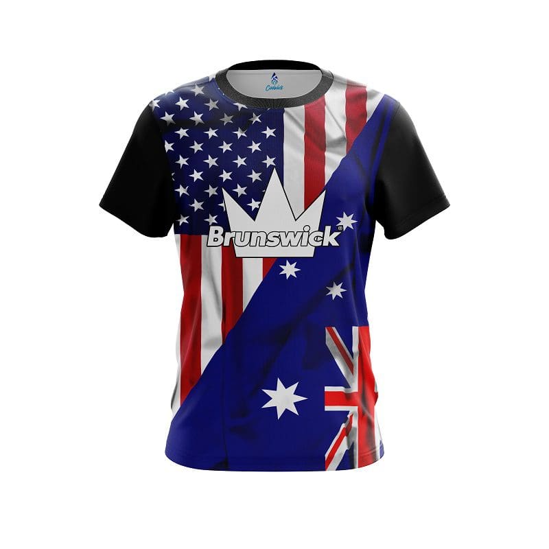 Stay 40% cooler with CoolWick. Our Brunswick Australia Flag Bowling Jerseys are made of two different fabrics with the back being our CoolWick technology fabric that helps wick moisture away and helps air flow more easily through the fibers.