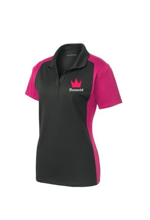 Brunswick Women’s GigaZone Performance Polo Bowling Shirt Colorblock Grey Pink