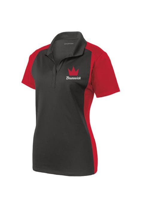 Brunswick Women’s GigaZone Performance Polo Bowling Shirt Colorblock Grey Red