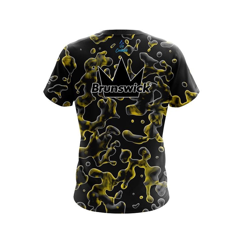 Stay 40% cooler with CoolWick. Our Brunswick Yellow Flowing Fluid CoolWick Bowling Jerseys are made of two different fabrics with the back being our CoolWick technology fabric that helps wick moisture away and helps air flow more easily through the fibers.