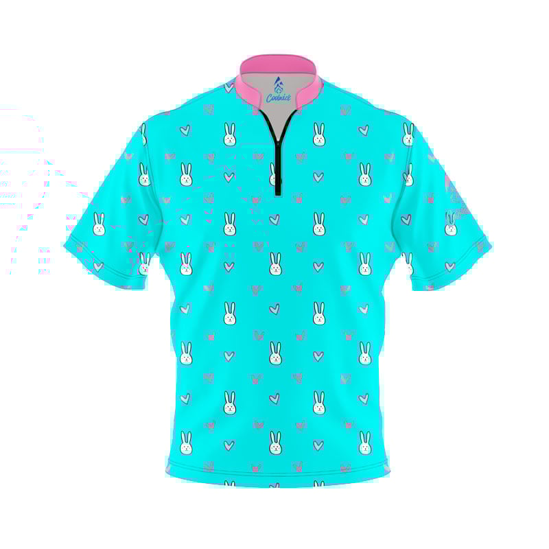 Our Fast Track jerseys come with a sash zip collar at no extra charge! There are no additional logos in order to ensure speedy production of your Bunny Love Fast Track CoolWick Bowling Jersey, which will complete the production process in 7 to 14 Days!