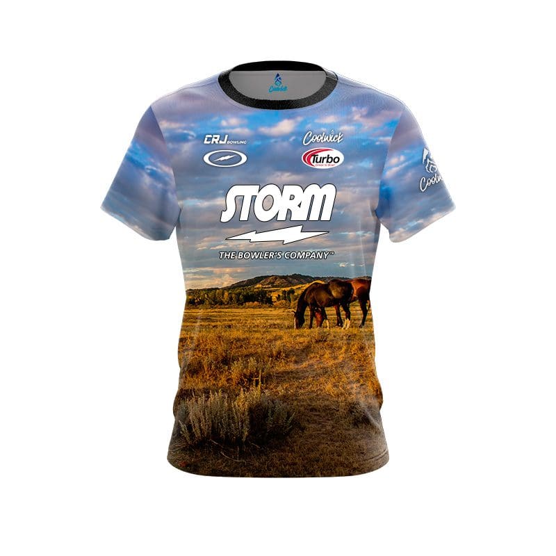 Stay 40% cooler with CoolWick. Our Storm Caitlyn Johnson Horse Grazing CoolWick Bowling Jerseys are made of two different fabrics. The back being our CoolWick technology fabric that helps wick moisture away and helps air flow more easily through the fibers.
