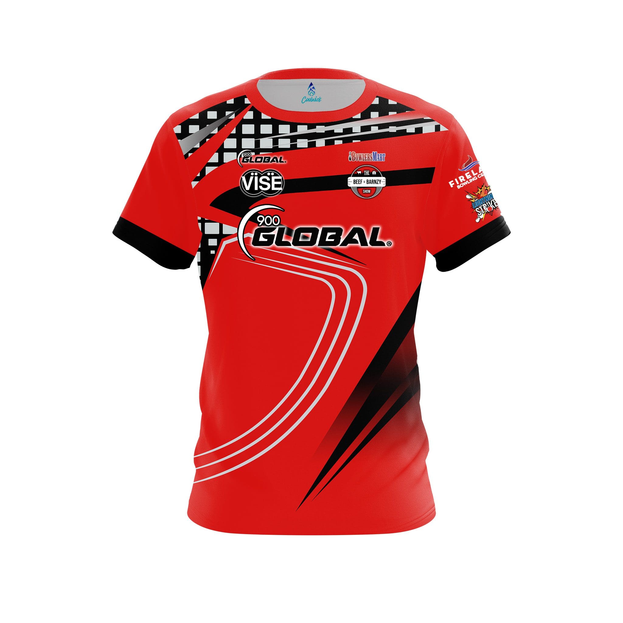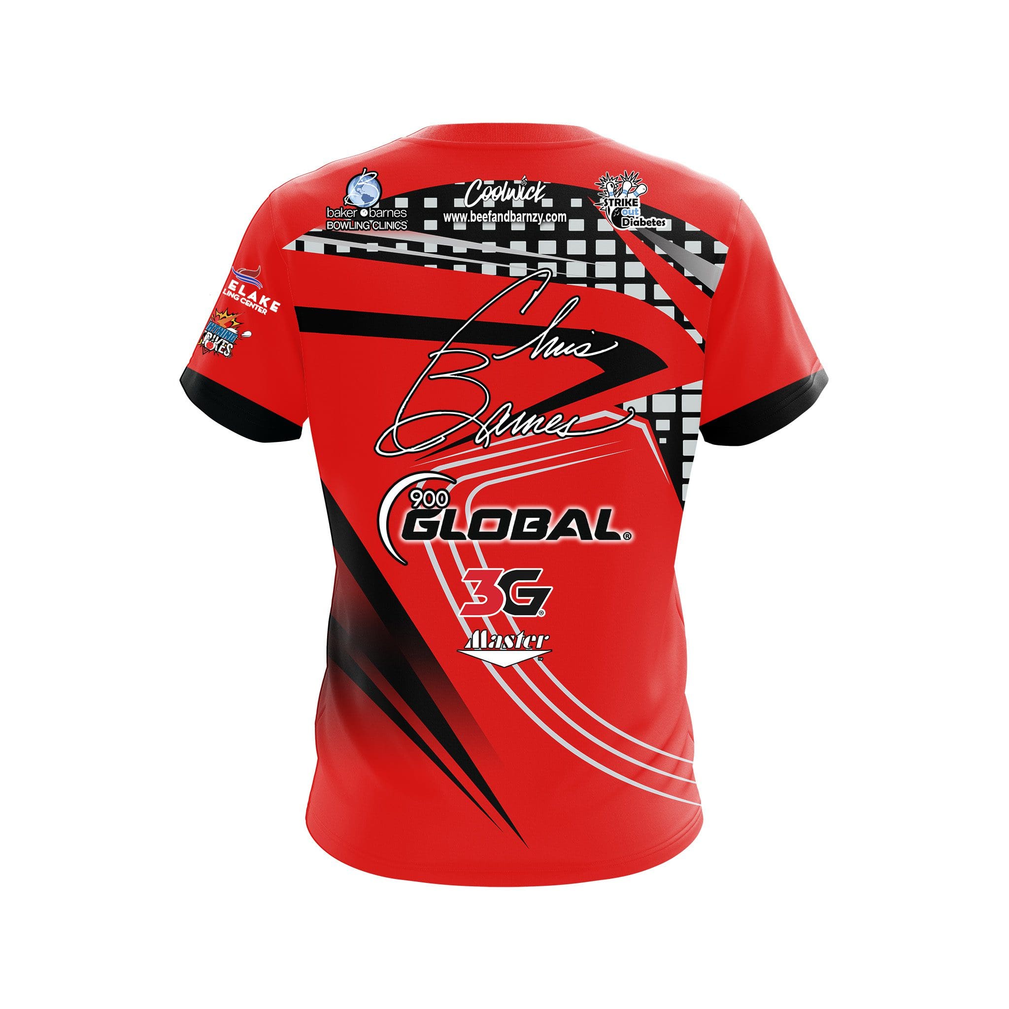 900 Global Chris Barnes Red Black Slash CoolWick Bowling Jersey