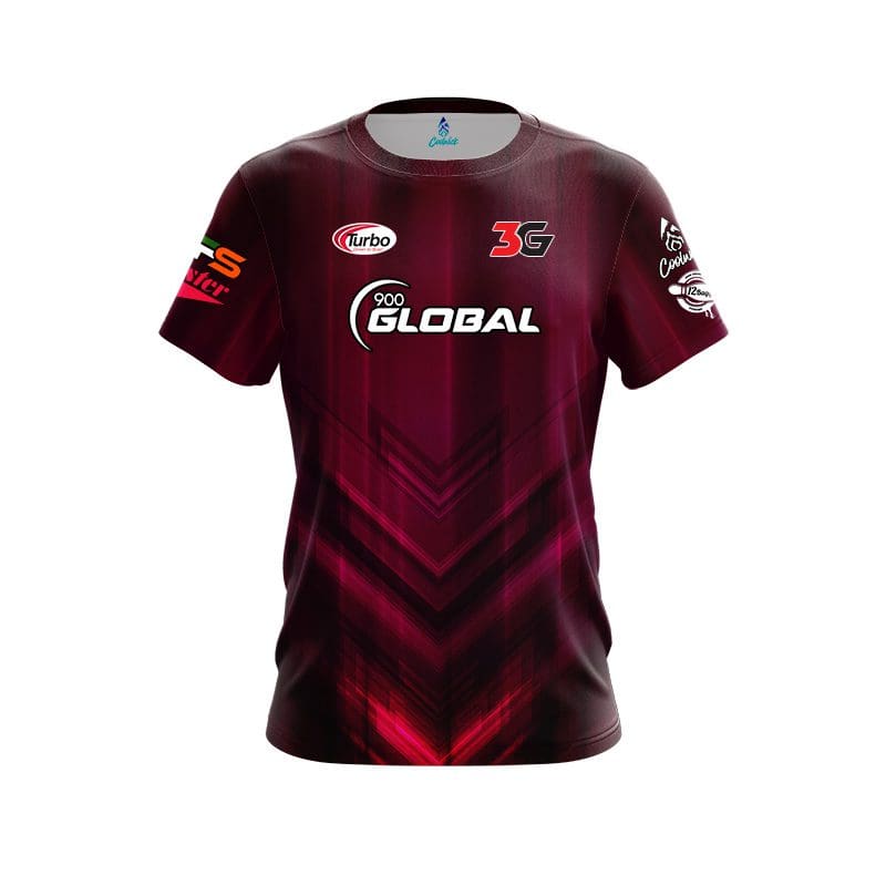 Designed, cut and sewn by hand stay 40% cooler with CoolWick. Our Chris Sloan Burgundy Chevron CoolWick Bowling Jerseys are made of two different fabrics. The back being our CoolWick technology fabric that helps wick moisture away and helps air flow more easily through the fibers.