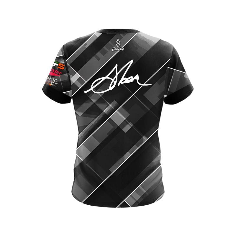 Designed, cut and sewn by hand stay 40% cooler with CoolWick. Our Chris Sloan Silver Black Hatched Lines CoolWick Bowling Jerseys are made of two different fabrics. The back being our CoolWick technology fabric that helps wick moisture away and helps air flow more easily through the fibers.