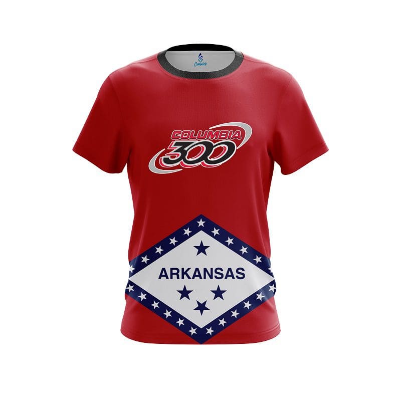 Stay 40% cooler with CoolWick. Our Columbia 300 Arkansas Flag CoolWick Bowling Jersey are made of two different fabrics with the back being our CoolWick technology fabric that helps wick moisture away and helps air flow more easily through the fibers.