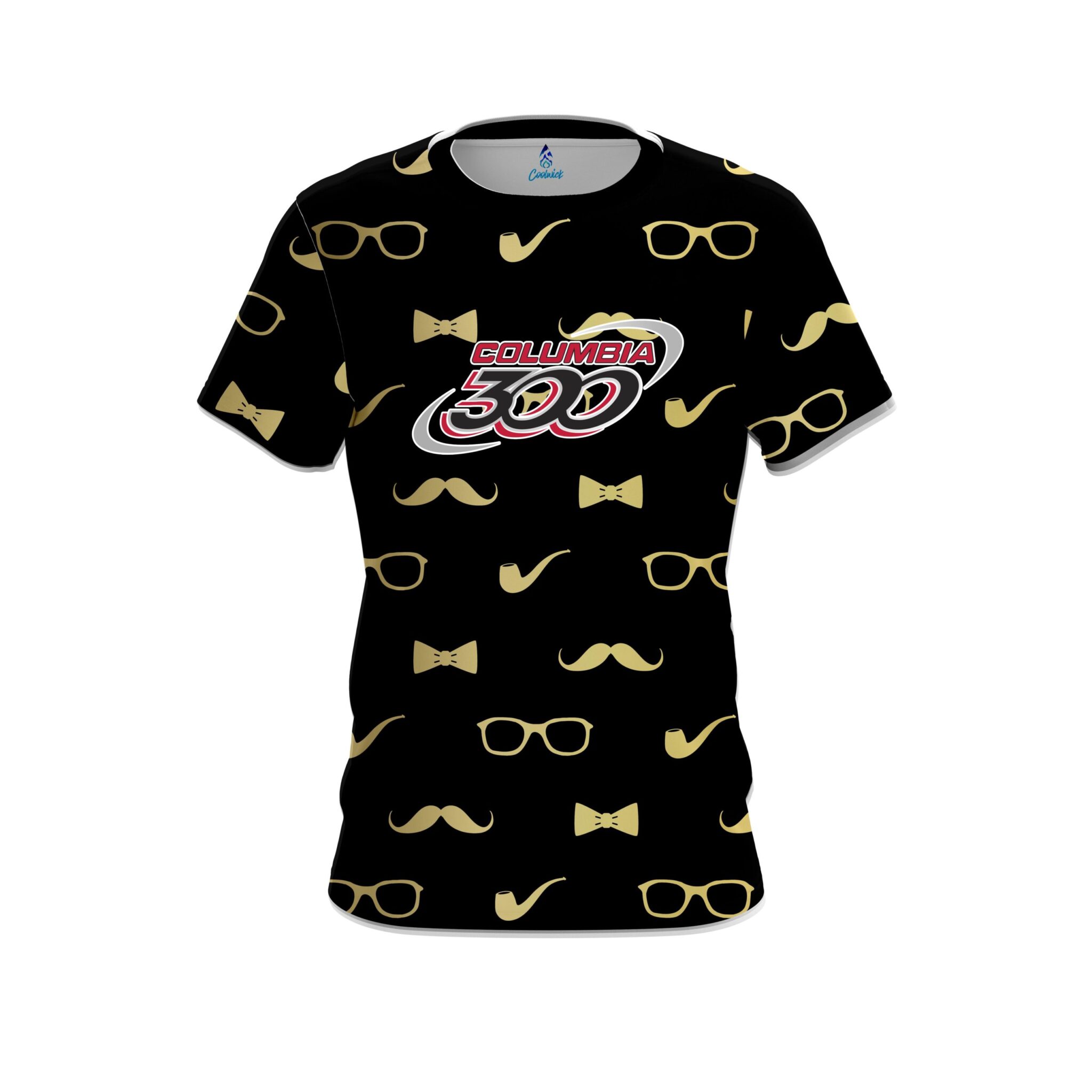 Stay 40% cooler with CoolWick. Our Columbia 300 Black Gold Mustache CoolWick Bowling Jerseys are made of two different fabrics with the back being our CoolWick technology fabric that helps wick moisture away and helps air flow more easily through the fibers.