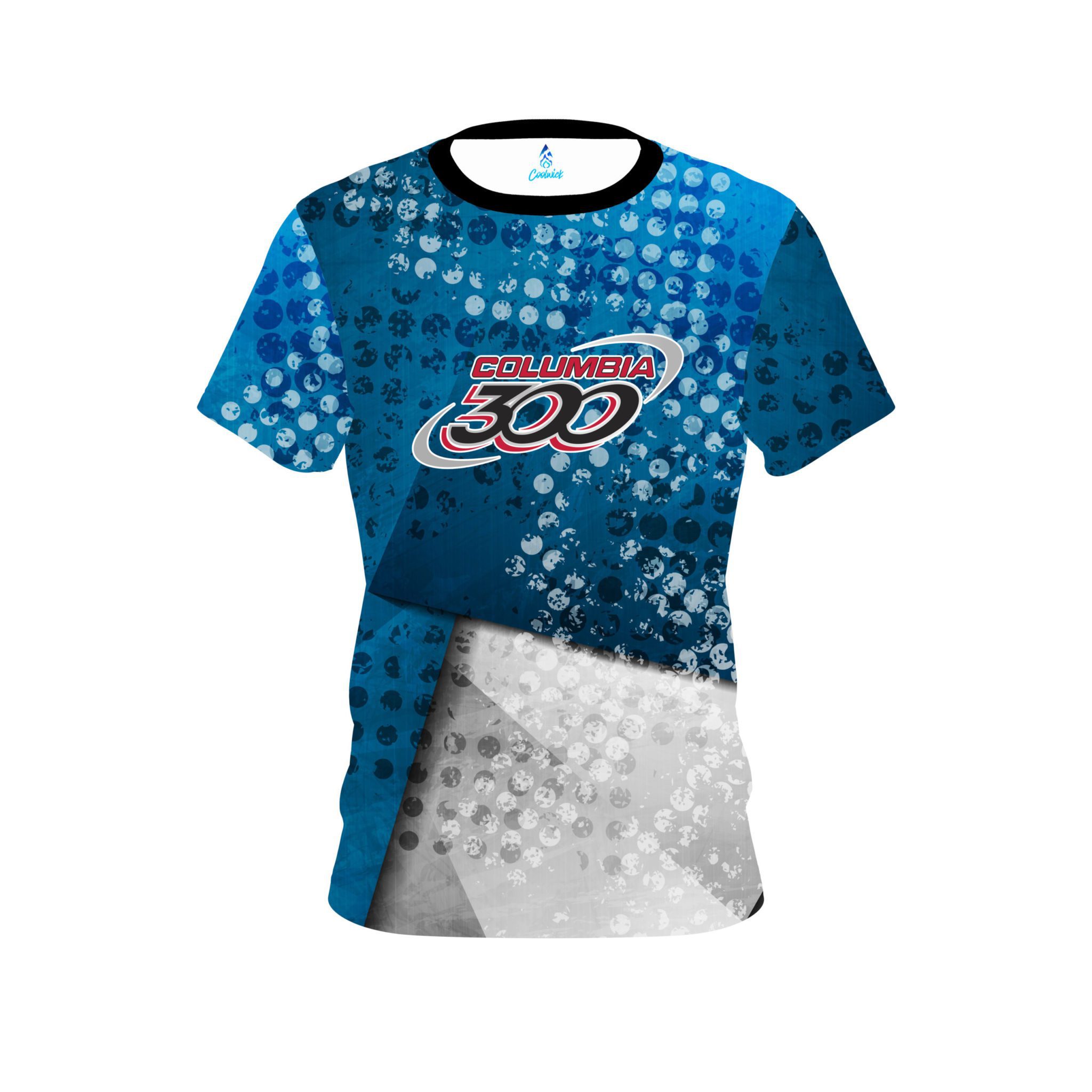 Stay 40% cooler with CoolWick. Our Columbia 300 Blue Grungey CoolWick Bowling Jerseys are made of two different fabrics with the back being our CoolWick technology fabric that helps wick moisture away and helps air flow more easily through the fibers.