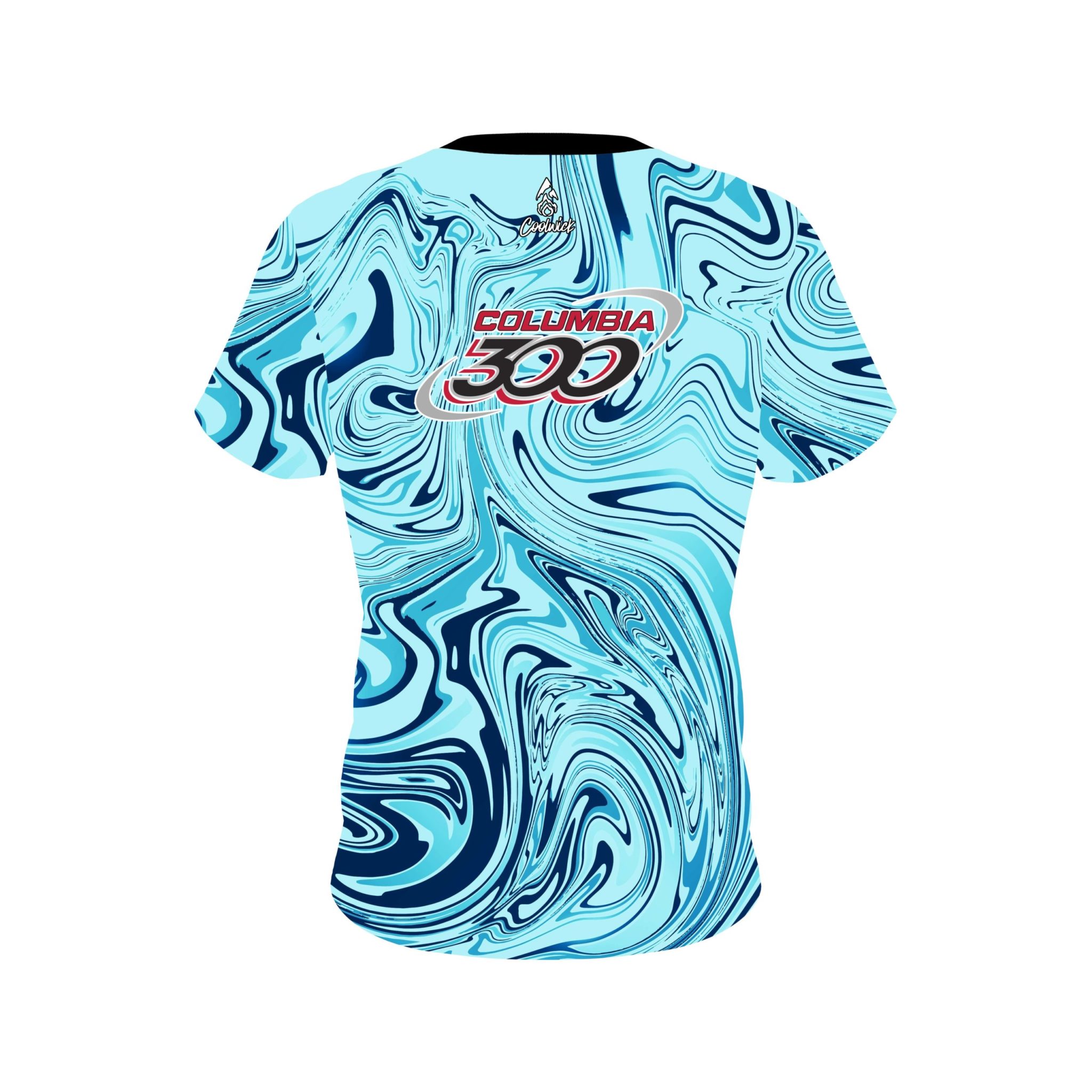 Stay 40% cooler with CoolWick. Our Columbia 300 Blue Hallucinate CoolWick Bowling Jerseys are made of two different fabrics with the back being our CoolWick technology fabric that helps wick moisture away and helps air flow more easily through the fibers.