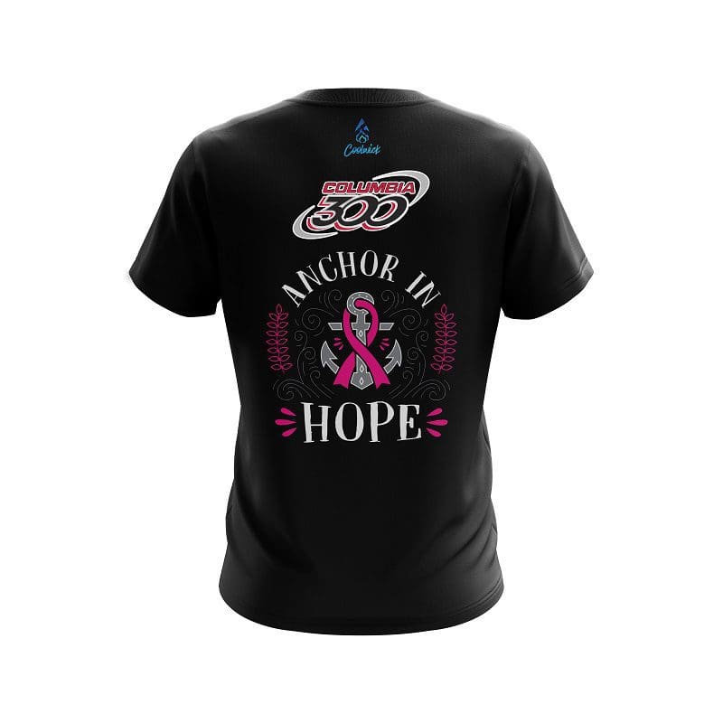 Stay 40% cooler with CoolWick. Our Columbia 300 Breast Cancer Anchor Fighter CoolWick Bowling Jerseys are made of two different fabrics with the back being our CoolWick technology fabric that helps wick moisture away and helps air flow more easily through the fibers.