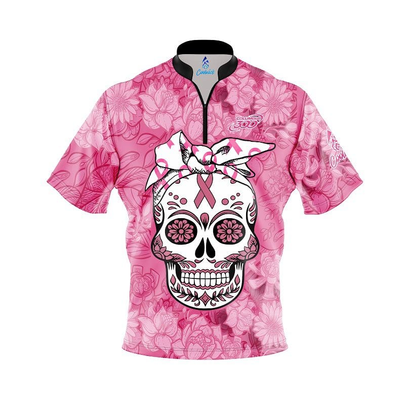 Our Fast Track jerseys come with a sash zip collar at no extra charge! There are no additional logos in order to ensure speedy production of your Columbia 300 Breast Cancer Mashup Fast Track CoolWick Bowling Jersey, which will complete the production process in 7 to 14 Days!